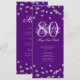 Convites 80 Birthday Programa Silver Purple Glitter Menu