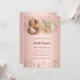 Um convite para fotos moderno e na moda para uma festa de aniversário 80. Um fundo rosa de gradiente dourado, decorado com estrelas. Personalize e adicione os detalhes da sua festa.