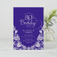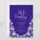 Convite de aniversário 80 elegante prateado roxo. Design clássico com rosas, folha prateada falsa e letra de script de tipografia. A Trendy convida o cartão perfeito para uma festa de na moda. Personalize com seus próprios detalhes. Pode ser personalizado para qualquer idade. Impressos convites Zazzle ou modelo de impressão digital instantânea para download.