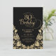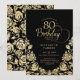 Convite de aniversário 80 de ouro preto elegante. Design clássico com rosas, folha de ouro falsa e letra de script de tipografia. A Trendy convida o cartão perfeito para uma festa de na moda. Personalize com seus próprios detalhes. Pode ser personalizado para qualquer idade. Impressos convites Zazzle ou modelo de impressão digital instantânea para download.