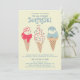 Novo para o Verão de 2024. Nosso "Sorvete, Gritar Que Todos Nós Gritares Sobrevivamos" 80 Convite De Aniversário! Seguidos de três cones retrorreflectores de sorvete de cor d'água com sorvete vermelho, branco e azul patriótico e aspergaminhos.