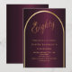 Um convite elegante de 80. Um fundo arrojado com um arco de ouro na frente.