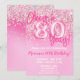 Saúde para 80 anos! Convite de aniversário rosa-rosa, 80 de aniversário para um jovem de 80 anos com moderno roteiro escrevendo e balões de folha divertida.