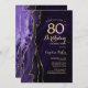 Convite de aniversário de 80 de agato roxo e dourado. Elegante design moderno com aquarela agate marble geode background, faux glitter gold e typografia script font. Trendy convida o cartão perfeito para uma comemoração de dia das mulheres na moda. Impressos convites Zazzle ou modelo de impressão digital instantânea para download.