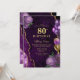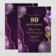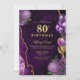 Convite de aniversário de 80 de Agato Floral de ouro roxo Elegante. O convite para 80 apresenta balões roxos e dourados, e rosas lilás roxos delicados, com espinhos dourados.