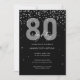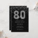 Convites 80 de aniversário de brilho de prata e brilho pret