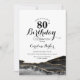 Convite de aniversário de 80 preto, branco e dourado. Elegante design moderno com aquarela agate marble geode background, faux glitter gold e typografia script font. Trendy convida o cartão perfeito para uma comemoração de dia das mulheres na moda. Impressos convites Zazzle ou modelo de impressão digital instantânea para download.