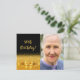 Convite de festas elegante, clássico, glamouroso e feminino. Uma fita e um arco dourados. Fundo preto. Com o texto: 80 Birthday! na frente. Modelo para sua foto. Adicione os detalhes do evento no verso.
