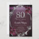Convites 80 de Aniversário do Frame Burgundy de Prata Chic