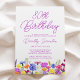 Uma bonito borda de flores silvestres decora o fundo deste convite de festas de aniversário surpresa de 80 adulto. Flores roxas, azuis, amarelas e alaranjadas criam um design colorido e feliz para celebrar esse aniversário marco. A caligrafia roxa moderna e simples acrescenta um toque de tendência para mantê-la fresca. O fluxo de letras aberto e livre de atalhos se coordena perfeitamente com as margaridas e as botas. Este convite de 80 de aniversário vai dar o tom perfeito, quando os seus convidados o receberem. Escolha encantadora para primavera ou festa de aniversário de verão. Este elemento faz parte da Coleção de Flores Roxas Bonito. Use-o para criar facilmente a suíte perfeita de convites para 80 e o tema da festa.