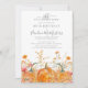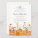 As abóboras de queda estão aninhadas em delicadas flores silvestres amarelas do ouro e laranja para criar uma estética elegante. Todo o texto é editável para que você possa facilmente artesanato seu próprio humor especial.