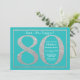 Convites 80 de Aniversário Surpresa Teal e Silver Glitter