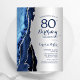 convite de aniversário 80 azul marinho e agate prateado. Elegante design moderno com cor azul-real de água agate marble geode fundo, faux glitter prata e script de tipografia. Trendy convida o cartão perfeito para uma comemoração de dia das mulheres na moda. Impressos convites Zazzle ou modelo de impressão digital instantânea para download.
