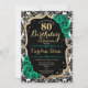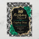 Convite de aniversário 80. Elegante design verde-esmeralda floral com ouro e rosas brilhantes falsos. Apresenta cor damasco preta e branca e fonte de script. Perfeito para uma comemoração de dia das mulheres na moda. Pode ser personalizado para qualquer idade! Impressos convites Zazzle ou modelo de impressão digital instantânea para download.