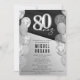Convite de aniversário Elegante Black Silver Balloons 80 - Um modelo de convite de 80 masculino e elegante em espanhol. Celebre seu aniversário de uma grande maneira. Apresentando um fundo preto e cinza com um número prateado 80. Balões de prata e brilho enquadram o convite. Totalmente personalizável, este convite está disponível em formatos impressos e digitais, fazer fácil de compartilhar via texto, email ou mídia social. Perfeito para marcar este marco extraordinário.