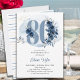 convite de aniversário com número 80 decorado com rosa-buds, flores e folhagem em tons de azul e areia costeira. Design sutil feminino e elegante com arranjos florais de aquarela, decapantes de tinta e pinceladas. Perfeito para comemoração de 80 com vibe costeira, casa de praia ou ao lado de lago ou local de frente de água, por exemplo.