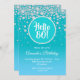 Um convite de festas elegante e glamouroso para uma festa de aniversário 80 para uma garota. Diamantes falsos em um fundo verde e azul-claro de ombre. Um grande círculo colorido com texto moderno com letra de estilo: Olá 80! Modelos para informações sobre a sua parte. Cartas brancas.