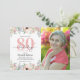 Este convite de aniversário 80 apresenta uma graciosa borda floral de aquarela enfeitando o topo e o fundo e oferece espaço para uma foto da honestidade. As matizes de pêssego e roxo suaves oferecem um charme delicado e feminino, perfeito para a comemoração de aniversário de uma mulher.