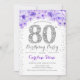 Convites 80 Festa de aniversário - Prata branca - Roxo