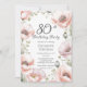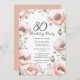 Elegante rosa pálido pingue-pongue design floral com design de "Festa de aniversário 80" com um quadro floral de papoilas cor-de-rosa sobre um fundo branco.