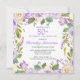 Honre uma pessoa especial com este Convite de aniversário elegante. Uma variedade de rosas roxas e marfim brancas, pregadas na folhagem verde-escura, criam uma estrutura botânica redonda.