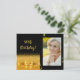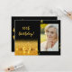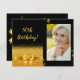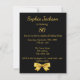 Convite de festas elegante, clássico, glamouroso e feminino. Uma fita e um arco dourados. Fundo preto. Com o texto: 80 Birthday! na frente. Modelo para sua foto. Adicione os detalhes do evento no verso.