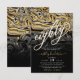 Convite de aniversário moderno e elegante de 80, com abstrato de ouro e fundo preto, detalhes do partido em letras de tendências e caligrafia de cor branca.