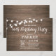 Convite de Aniversário para 80 Russo com Luzes de Cordas Fundo de Madeira. 13 15 16º 18º 18º 21rua 30 40º 50º 60º 70 80 100º, qualquer idade. Para mais personalização, clique no botão "Personalizar" e use nossa ferramenta de design para modificar este modelo.