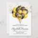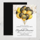 Balões negros e dourados e convite para a 60ª festa de aniversário. Design de preto e ouro negros e em forma de ouro, com uma letra moderna de escrita. Personalizar para qualquer idade. 40, 50, 60, 70, 80, 90 e mais.