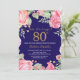 Convite de Aniversário para 80 de Surpresa Floral para Mulheres. Flor Botânica De Aquarela. Dourada Glitter. Flores Florais De Peões Rosa. Aniversário Adulto. Fundo Azul Marinho.