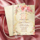 Convide seus convidados em estilo para uma 85ª festa de aniversário com este convite de cartão floral clássico. Este elegante modelo de design apresenta rosas de aquarela em tons de rosa e pêssego com folhas verdes em fundo dourado, brilhando. No centro há um grande número "85º" na tipografia rosa moderna. Abaixo estão os detalhes do seu partido para personalizar. A parte traseira da placa é um padrão de shimmer dourado correspondente. Desenhado pela artista ©Susan Coffey.