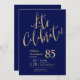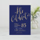 Este fabuloso convite de aniversário azul de homem 85 que diz "Celebrado de Vamos!" em uma letra moderna em ouro seria perfeito para celebrar o homem no seu aniversário de 85 anos. Este convite é moderno, na moda, moderno e contemporâneo. Para ver seus convites personalizados, selecione "Personalizar este modelo" e digite suas informações. É super fácil!