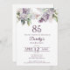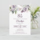 Lilases púrpuras de aquarela suave criam um convite bonito de aniversário de 85 anos. A tipografia adiciona uma víbora, retrô víbora. Todo o texto é editável para que você possa definir o tom certo. Você também pode mudar fontes e cores facilmente. Este convite de 85 anos está disponível em estoque de cartão tradicional e em uma versão para download. Faz parte da coleção Purple Primavera Lilac Flower. Ele permite que você escolha um tema e, em seguida, crie facilmente um conjunto único de convites, sinais de boas-vindas e decorações de festas. O planejamento de festas torna-se divertido e agradável.