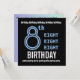 Este design contemporâneo uma maneira do divertimento de convidar povos a uma celebração do aniversário para um menino que gira oito. Todo o texto é customizável. Você pode experimentar com os tipos de papel diferentes clicando do "na aba das opções convite" no canto de righthand superior. Eu recomendo este design em um papel metálico hued do gelo que dê a seu convite um shimmer e um brilho festivos.