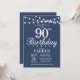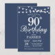 90 Aniversário com Luzes de Cordas. Fundo Azul. Homens ou Mulheres Aniversário. 13 15 16º 18º 20 21rua 30 40º 50º 60º 80 de 70 100º, qualquer idade. Para mais personalização, clique no botão "Personalizar" e use nossa ferramenta de design para modificar este modelo.