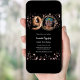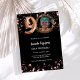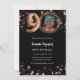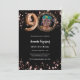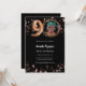 Um convite para fotos moderno e na moda para uma festa de aniversário 90. Um fundo preto clássico, decorado com estrelas douradas rosa. Personalize e adicione os detalhes da sua festa.