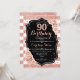 90 para o convite às mulheres. Rosa de ouro branco e design preto elegante com brilho sujo. Apresenta faixas, rosas cor-de-rosa pinceladas, fontes de script e confetti. Perfeito para uma celebração de aniversário de na moda milestone.