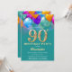 Convites 90 Aniversário Teal e Balões Coloridos Dourados