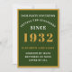 Para esses nasceres em 1932 e celebrando a festa de aniversário de 90, temos o cartão de convite de aniversário ideal. O fundo verde com design branco e dourado é simples, mas elegante. Personalize facilmente o texto na frente e na parte traseira deste cartão de convite de aniversário usando o modelo fornecido. Parte da gama de padrões de configuração de cartões, suprimentos para festas e presentes.