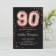 convite de aniversário 90. Design elegante em ouro brilhante rosa e preto. A placa de convite apresenta o rosa dourado número 90 balões e fonte de script. Perfeito para uma comemoração de na moda. Envie-me uma mensagem se precisar de idade personalizada.