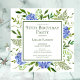 Este convite para festa de aniversário/90 de hydrangea azul é caprichoso e espantoso! Com a sua aquarela azul de várias abas, sabedoria verde natural, e uma foto da aniversariante no verso é perfeita para o seu amado fazer 90. Ao selecionar Personalizar esta modelo e digitar as suas informações e carregar uma foto favorita, você pode ver os seus belos convites em segundos!