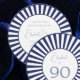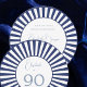Um convite para o Aniversário elegante e elegante de faixa azul e branca — a idade pode ser alterada para qualquer idade. design bonito e óbvia que tem modelos para você mudar facilmente as informações por conta própria. Eleve seu aniversário inspirado em azul e branco.