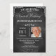 Este convite à fotografia de 90 festas de aniversário para a tipografia do quadro é moderno, moderno e chique. Feito em tipografia tradicional de quadro negro e branco com várias fontes, este convite para festa de aniversário de chic é uma forma única de convidar família e amigos para uma celebração especial de aniversário. As placas RSVP também estão disponíveis.