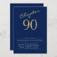 Convites 90 Birthday Dourado Script Azul