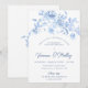 Convite de festas de aniversário de 90 floral azul Elegante.