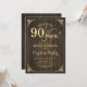 Convite de aniversário de 90. Design rústico elegante com padrão de madeira marrom escura, dourado falso e fonte de script. Saúde para 90 anos! Pode ser personalizado em qualquer idade! Envie-me uma mensagem se precisar de mais personalização.