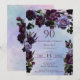 Rosas roxas escuras e lavandas, peonias e bagas criam uma vibração gótica. A folhagem fina adiciona ao drama, enquanto uma lavagem com aquarela púrpura, azul e rosa suave adiciona um toque feminino macio e evita que seja muito escura. A parte de trás é tão bonito quanto a frente com um buquê gótico único definido na mesma lavagem com aquarela. A tipografia adiciona uma víbora, retrô víbora. Todo o texto é editável para que você possa definir o tom certo. Você também pode mudar fontes e cores facilmente. Este convite para 90 de aniversário está disponível no estoque de papelão tradicional e em uma versão para download. Faz parte da coleção Moody Purple Flower. Ele permite que você escolha um tema e crie facilmente um conjunto único de convites, sinais de boas-vindas e decorações de festas. Torna o planejamento de festas divertido e agradável.
