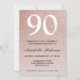 Convites 90 Birthday Pink Rose Dourada Glitter Sparkle Ombr