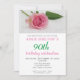90 Aniversário de Convite de festas Rosa Rosa Rosa Rosa Rosa Rosa Rosa Rosa. Belo convite de aniversário de 90 floral para ela com uma linda flor rosa rosa rosa. Cor rosa e verde. Personalize a placa com seu nome, idade, data, local e RSVP. Perfeito para uma mulher que comemora o nonagésimo aniversário.