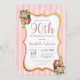 Convite de aniversário 90 Vintage Chique Blush Rosa Stripe Dourado Glitter Floral